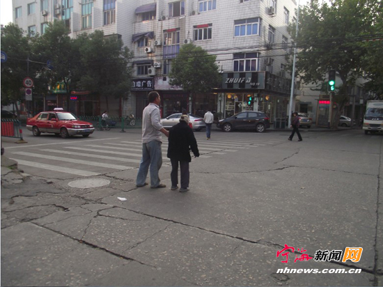 这是我看到最感人的一幕:老邮政局旁一位老奶奶走近人行道又折回去,原来老人已经89岁高龄,看到车来车往,紧张不已。在附近干活的一位泥水师傅看到,马上停下手中的活计,小心翼翼地牵着她安全过马路,然后继续干活。 (将心比心)