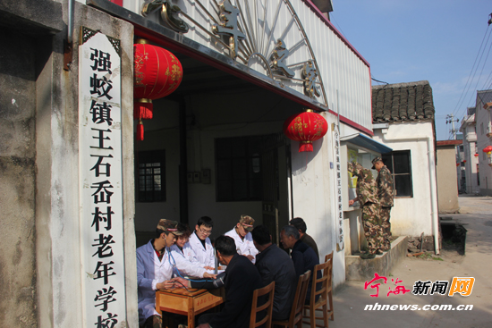近日,宁波边防支队峡山边防派出所开展学雷锋党团日活动。连队卫生员会同志愿者到老年协会开展义诊,讲解老年人卫生防疫知识,并帮助打扫老年活动场所。 (通讯员高凯姚中良摄)