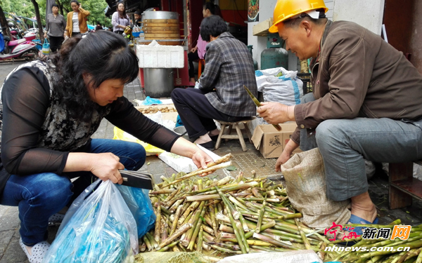 宁海新闻网讯 昨日,城区街头有野山笋以每斤4元的价格在出售。