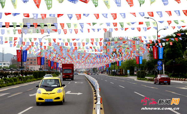 宁海新闻网讯 连日来,宁海一些主要街道、广场、宾馆及会场等处彩旗飘飘、旗幔飞舞、彩球飞扬,一派喜庆气象。美丽缑城以靓丽的风姿喜迎参加第十四届徐霞客开游节的八方宾朋。