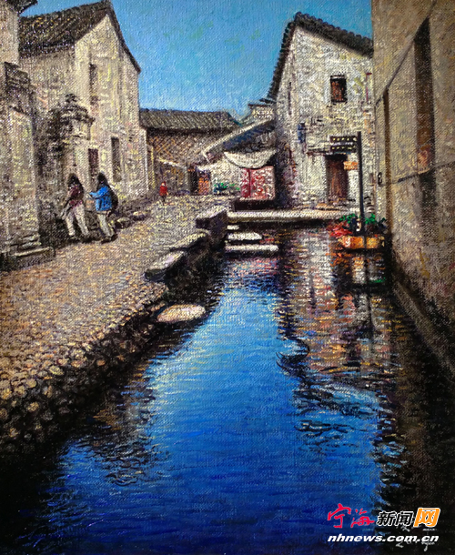 坦荡 怀旧 写实 散淡 ——记宁海籍油画家葛俊辉 5月18日上午,宁海县文联主办的《葛俊辉油画作品大展》开展,有心的市民们一进入A馆的四个大厅,就觉得这次观展太值了——享受到的是绝对上档次有内涵的一场视觉盛宴。 老旧的桌凳、有裂口的羊皮木箱、油灯烛台、坛坛罐罐,配一块蓝印花或红底牡丹衬布……生活中常见的老家什,往往被我们忽略甚至遗忘了,但在葛俊辉的笔下呈现。它让你像是回到自己老屋的一隅,那么温暖;那些鹅卵石小巷组合着缓缓淌着清澈水流的石桥的画面,就像是童年的家乡,那么亲切。此时对于原作者,就会有种仰视加钦佩的感觉。 齐肩头发,络腮胡子,搭着暖色的横条绒质衬衫,浑身彰显着艺术范儿。如关注到那绣着字母的牛仔裤,就会感觉到一丝桀骜不驯之气……葛俊辉是个坦荡的画家,他毫不避讳自己的原籍是在宁海乡下(岔路镇花堂村),他也不避讳自己没有上过大学,所有的作品技巧是自己“磨”出来的,更不避讳自己没有正式工作,在成家后也只干干“零时工”的经历。因为他有着厚厚的底气,那就是他所喜欢的事业。 ![]() 《前童古镇》 每逢暑假寒假时候,父母就带他来岔路老家陪伴爷爷奶奶。具有天赋的小俊辉,总不忘带着画笔。每天对着老屋的老家具,旧门板,竟特别有感觉,有空就描摹,把单调贫乏的童年岁月填充满满当当,直到自己高中毕业,凭着一幅“老家什”的自创油画,考进了一家美术培训班,再努把力,就进了很有权威的上海油画雕塑院进修班,那是1982年,他的老师竟是原浙江美院院长肖峰先生,于是,激情与才情蓄势迸发。1986年参加首届上海青年美术大展,就获得了优秀奖。继续潜修到1994年,作品入选第八届全国美术大展。此时,他突然感悟到,老家岔路是他少年灵感的触发点,于是放弃大上海繁华喧嚣的生活,隐居到宁海老家一心“面壁”修炼创作,历时达5年之久。1999年起陆续参加上海美术大展、全国油画展、大众拍卖、上海艺博会和北京艺博会等各项展览活动。影响越来越大,其作品入选《上海现代美术史大系》和《世纪追梦——百年中国时代图典展》等画典。 ![]() 《公用电话》 展馆中近80幅画作都是俊辉的“宝贝”,都是他用激情,用才情,用乡愁调和出来的佳作,无论是小品“前童古镇”还是“许家山石头村”,无论是优雅的“小提琴”,还是最诙谐的“圆南瓜”,在那里一挂,就是一种人生姿态,就是一种忘我境界:清新淡雅、写实怀旧,正像画家葛俊辉其人。 |