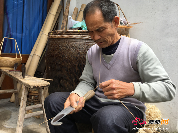 见习记者潘璐璐通讯员童俊娜 ![]() 随着时代的进步,新技术与新材料不断出现,带有农耕文明印记的纯手工竹编逐渐淡出了人们的日常生活,成为一道渐行渐远的风景。但在深甽镇马岙村,有一位名叫俞兴甫的古稀老人,至今还默默坚守着家传的竹编手艺。 记者见到俞兴甫时,他正手执篾刀,一丝不苟地劈竹条。破篾是竹编工序的第一步,也最能考验篾匠的基本功。1毫米厚的竹片,记者用肉眼根本看不出粗细区别,而俞兴甫却说不够匀称不能用。 俞兴甫的手艺是家传的,他的父亲曾是马岙竹器社的社长。从11岁开始,他便跟着父亲出门做活,耳濡目染地学习补簟,打花草。补簟就是给竹器补洞,打花草是竹编行当里的术语,就是编制竹器上的花纹,这个技艺属于篾匠行当里的细作。12岁时,俞兴甫正式拜父亲为师学习竹编。三年学徒,三年伙计,三年半作。9年时间到了,才算出师,才能自己当师傅,带徒弟。14岁时,俞兴普成了一名学徒,出师后,一直做粗作活儿,一直做到36岁。62岁时,他回到马岙村,重拾父亲的老手艺,从事竹编细作。 竹编的讲究,从选竹子开始。只有深山里5—6年的野生竹才密度刚好,够韧。用篾刀劈出蔑丝,然后用龙门刀,用大拇指按在刀口上,抽成各种粗细的竹丝。抽好的竹丝,用开水煮过,有些还需加颜料染色,煮完晾干藏起来备用,不能见风,见了风,竹丝容易还潮,发黑。 备好竹丝,就是繁复无比的编织工作了。不论什么图案,只要见过一眼,编过一次,俞兴甫就能记住,再也用不着图纸。正篾固定位置,近百根口篾穿插其中,长短粗细各有讲究,全在一分一毫之间。俞兴甫拿起一个水果篮介绍“胡椒眼”编织法,三根正篾形成60°的夹角,从底盘到主体,记者看了好一会功夫,也找不到竹片的头尾藏在哪里。一个浅口提篮,底纹编着红色的“囍”字,周身的竹条1毫米都不到,竹条密而不紧,提篮浑圆流畅。 俞兴甫说:70岁了,做不动了,只为传承父亲的手艺。曾经有外国收藏家出高价买他的成品,俞兴甫不肯卖。“我要留着,让后代人知道,中国历史上,有过竹编这样精细的非遗文化。”曾有不少人上门求学,俞兴甫说,“一看就知道不是诚心的,耐不住性子”。他坚持按老传统,从小学起,要有正式的拜师仪式,正规的学徒训练。他坚持所有的东西都用人工完成。慢虽慢一些,但慢工出细活儿,这是对老传统的一种尊重。在俞兴甫的工具篮里,很多工具都是父亲用过的,例如一把沿用至今的鲁班尺。 |
