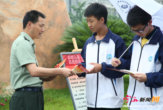 据宁海新闻网 近日,梅林街道“征兵宣传面对面”活动在县正学中学、县职教中心等高中学校以及各村(社区)、企业全面展开。据悉,今年梅林街道应届毕业生和新增18周岁青年兵役登记率均达到了100%,充分体现了梅林青年的参军热情。图为征兵工作人员在正学中学开展征兵宣传工作。(通讯员郑伟周摄)