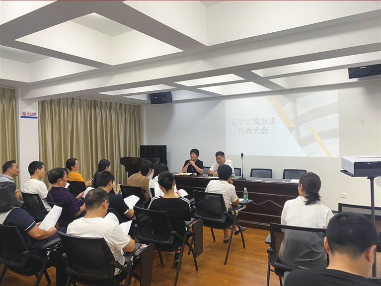 2021年8月,小区完成了新一届业委会的选举,新成立业委会马上和县住建局进行了对接,商定引进物业公司进入正学公寓进行为期一个月的物业管理“试运行”。随着业委会的带动,愿意参与小区管理的成员也逐渐浮现,业委会主动与他们对接,并和他们讨论小区当前的管理问题,如与物业公司确定按照实际居住“一户一车包年制、多则计时”的方式来缓解停车压力。