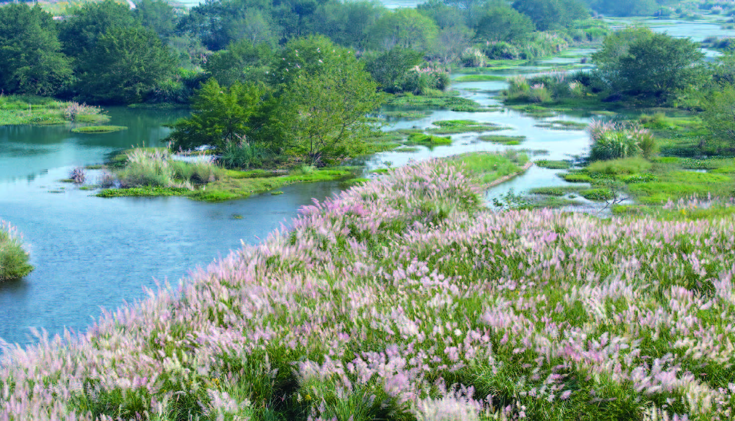 在跃龙街道石舌章村的河畔,一片独特的粉色斑茅悄然绽放,如同大自然的调色盘轻轻挥洒,为这片湿地披上了一袭浪漫的纱衣。微风拂过,斑茅随风摇曳,仿佛是秋天最温柔的笔触,在这宁静的河岸边勾勒出一处生动的景致。